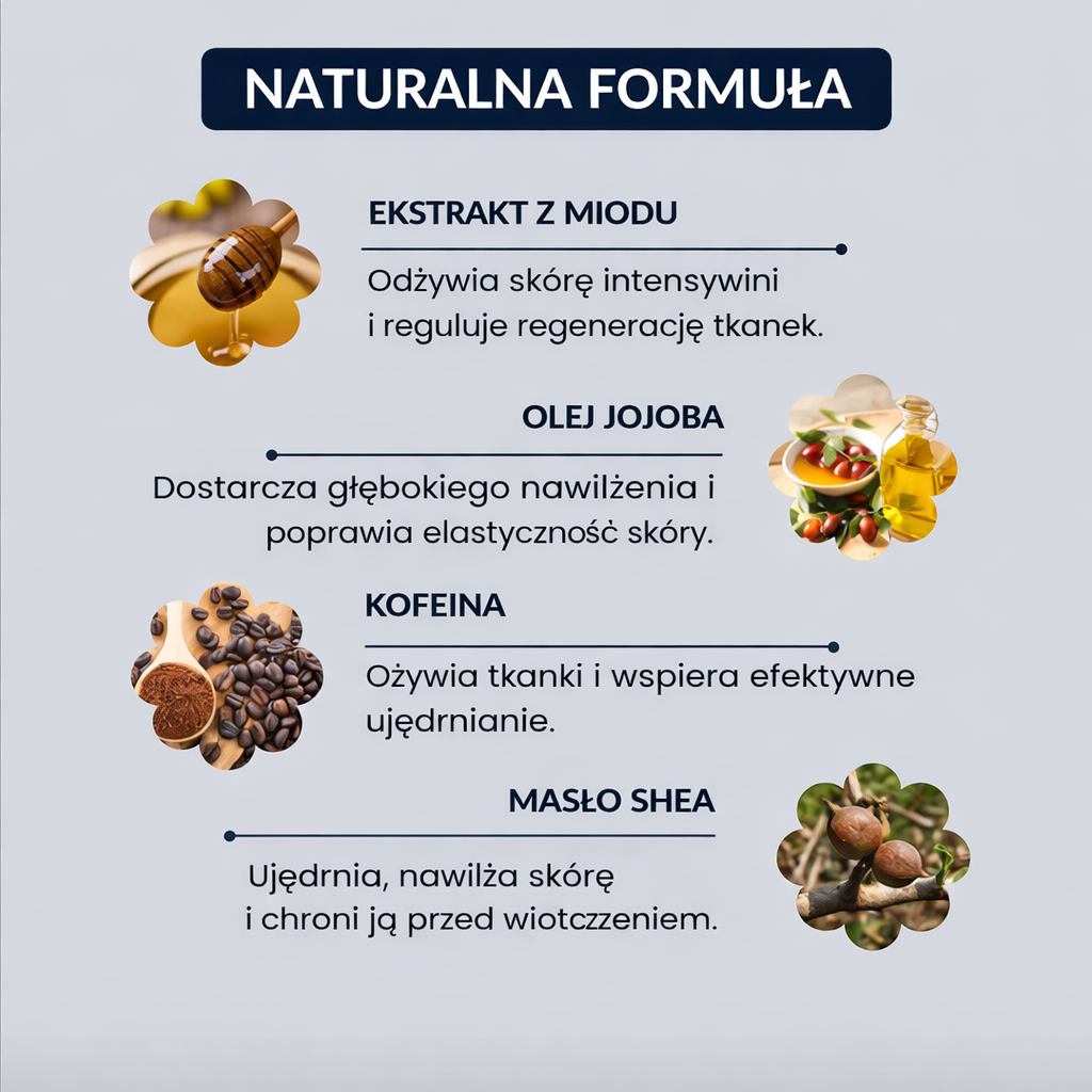 Zastosowane składniki są w 100% pochodzenia naturalnego. Działają wyłącznie na komórki tłuszczowe w piersiach, nie wpływając na układ gruczołowy ani równowagę hormonalną.